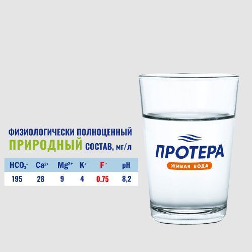 Физиологически полноценная питьевая вода. Природный баланс полезных минералов. Содержит фтор для здоровья зубов.